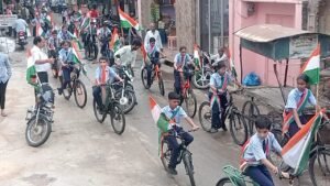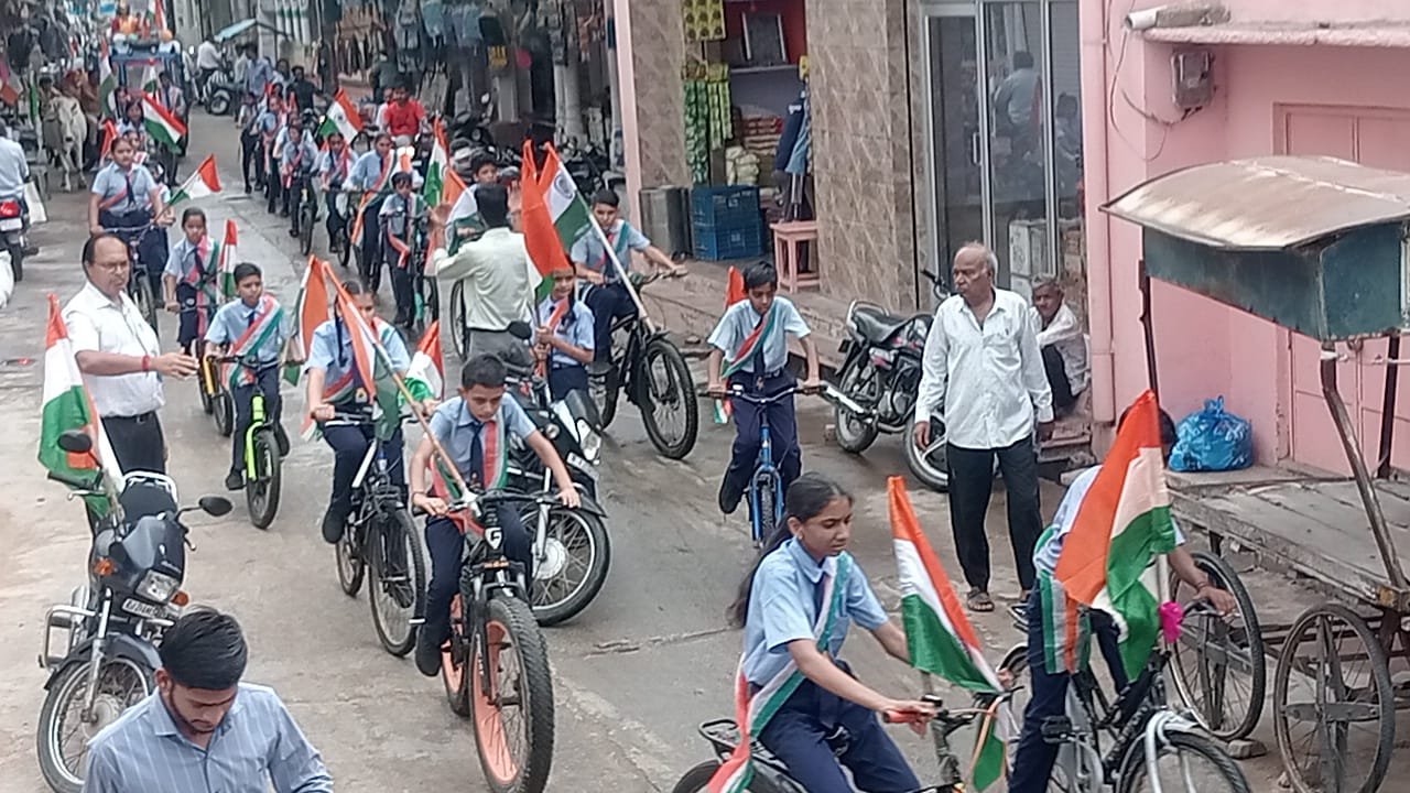नावां: शारदा बाल निकेतन सीनियर सेकेंडरी स्कूल नावां सिटी के छात्र-छात्राओं द्वारा आज साइकिल तिरंगा रैली निकाली गई।