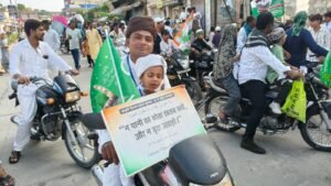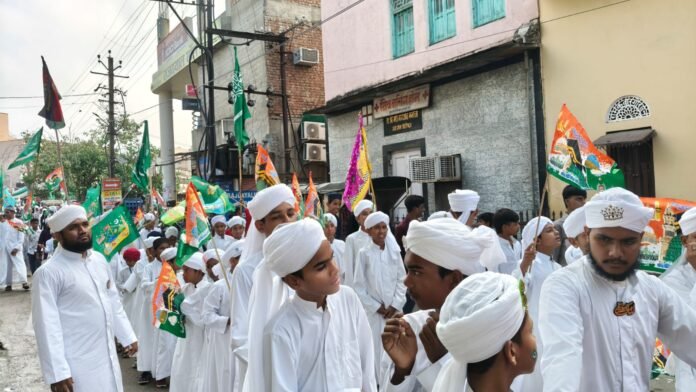 जुलूस में शामिल लोगों के हाथों में इस्लामी झंडों के साथ तिरंगे झंडे भी लहरा रहे हैं, जिससे फिज़ा एक साथ धार्मिक और देशभक्ति के रंग में रंग गई है। यह नज़ारा लोगों को नबी-ए-करीम के पैग़ाम के साथ देश की एकता और भाईचारे की याद भी दिला रहा है।