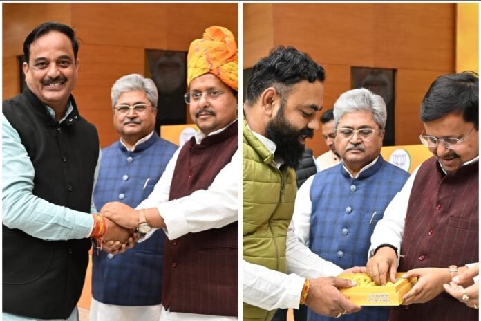 यह सम्मान डीडवाना सहित राजस्थान की समृद्ध सांस्कृतिक परंपरा एवं संगठनात्मक प्रतिबद्धता का प्रतीक रहा। वहीं भाजपा युवा मोर्चा, डीडवाना के जिला संयोजक डॉ. मनीष कुमार ओझा ने मिठाई खिलाकर शुभकामनाएँ दीं।
