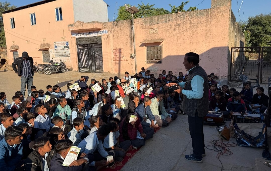 चम्पालाल कुमावत ने कार्यक्रम अंतर्गत गतिविधियों की जानकारी देते हुए विद्यार्थियों को अपने परिवार एवं पास-पड़ोस के असाक्षरों को पढ़ाने के लिए स्वयंसेवी शिक्षक बनने हेतु प्रेरित किया।