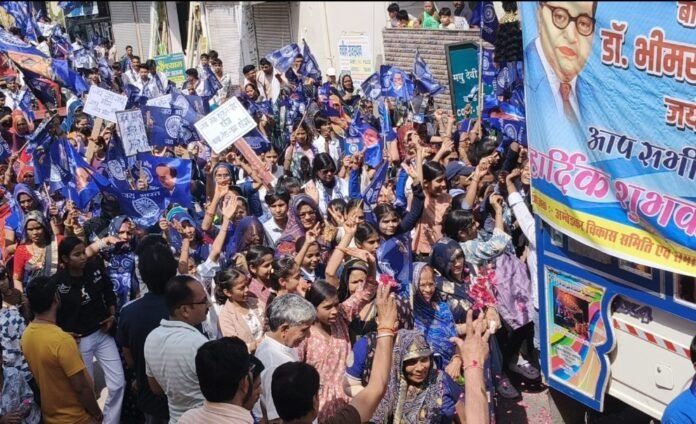 करीब 4 किलोमीटर लंबी इस यात्रा में शामिल लोगों ने हाथों में तिरंगा लेकर “जय भीम”, “जय भारत” और “जय संविधान” के गगनभेदी नारे लगाए।