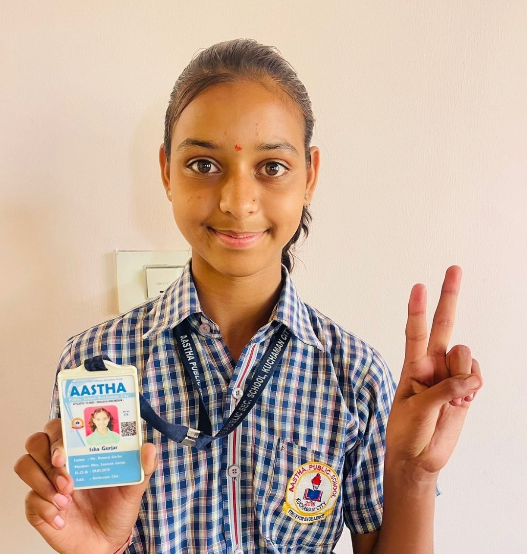 कुचामन सिटी. शिक्षा नगरी के बुड़सू रोड जसराना स्थित आस्था पब्लिक स्कूल & स्पोर्ट्स एकेडमी की कक्षा 6 में अध्ययनरत छात्रा ईशा गुर्जर पुत्री हंसराज गुर्जर ने सैनिक स्कूल में चयन प्राप्त कर विद्यालय व क्षेत्र का नाम रोशन किया है।
