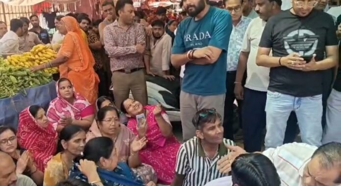विरोध के दौरान समाज के महिला-पुरुष सब्जी मंडी क्षेत्र में जमीन पर बैठ गए और भजन-कीर्तन करते हुए शांतिपूर्ण प्रदर्शन किया। इस दौरान भाजपा कुचामन मंडल अध्यक्ष बाबूलाल कुमावत भी मौके पर पहुंचे और विरोध में शामिल हुए।